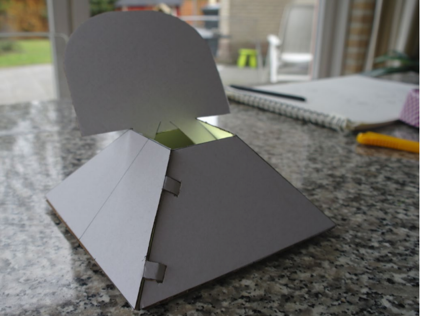 Voor de techniek is vooral gekeken wat mogelijk is met het materiaal karton. Dit omdat golfkarton niet alle kanten op gebogen kan worden. Door het karton in combinatie met een warme lamp is er gekozen voor een ledlamp, deze omdat die minder warm wordt dan andere lampen. De bediening van de lamp is zo simpel mogelijk. Tijdens de concept fase zijn er veel ideen langs gekomen maar het simpele klepje bleek uiteindelijke de beste optie.